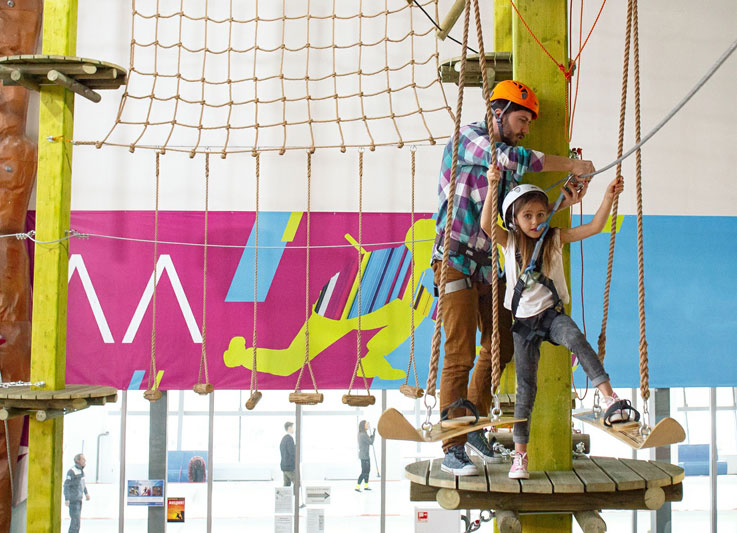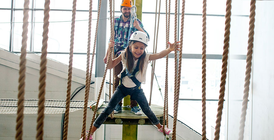 Проводите время в веревочном парке всей семьей. Вас ждут 4 трассы различной степени сложности на высоте от 1 до 10 метров. С вашей помощью ребенку будет проще и интереснее проходить наши задания.